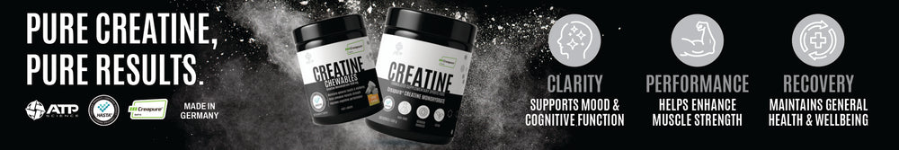 ATP Creatine Strength and power training Creatine monohydrate and blended formulas supporting muscle energy production, performance, and training output
