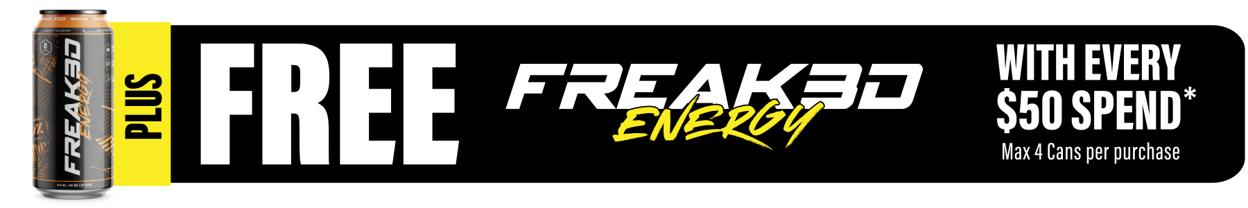 You receive 1 FREE Freak3d Energy Cans with every $50 purchase, with a maximum of 4 cans per customer.