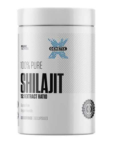 Support your wellness goals with 100% Pure Shilajit Capsules by Genetix Nutrition. Formulated with a 15:1 extract ratio, this pure and simplified Himalayan Shilajit Extract supplement offers a quality dose in a convenient capsule format. With 60 servings per bottle and a clean label promise, it’s gluten free, vegan friendly, and backed by Genetix Nutrition’s quality guarantee.