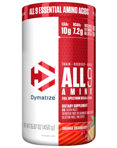 Branched chain amino acids provide that and All 9 Amino by Dymatize ensures that you never miss a beat.