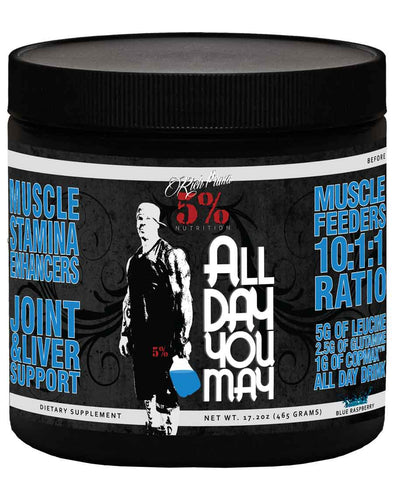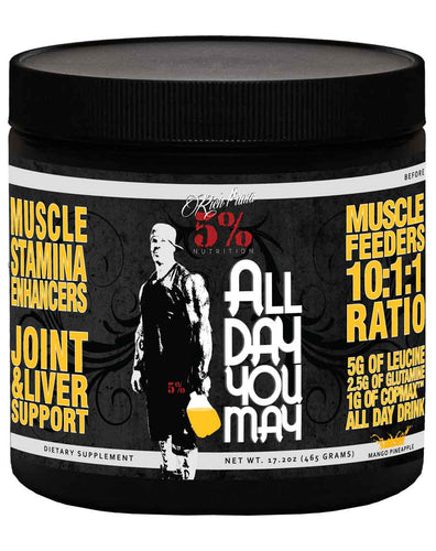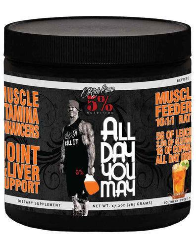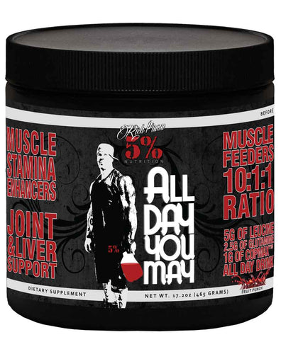 While food should always be your primary source of vitamins, minerals, anabolic amino acids and nutrients, All Day You May provides the necessary additives to supplement your diet in a way that supports muscle growth, enhanced recovery and improved health.