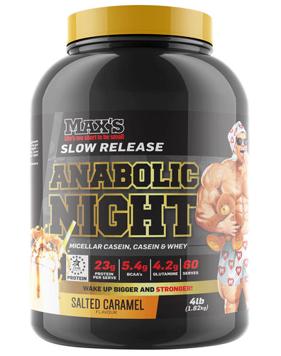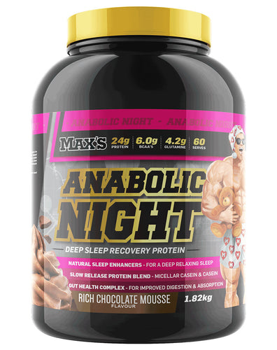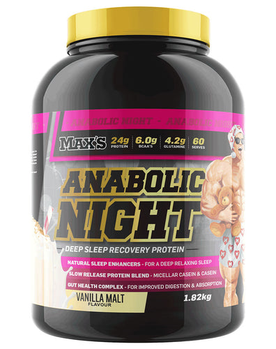 Anabolic Night is designed to drip feed your muscles with bioactive muscle building protein, without the gastric stress that food causes when eaten to close to sleep. But this isn’t just some run of the mill casein protein, Max’s Anabolic Night also includes muscle protein synthesis stimulating whey protein concentrate as well.