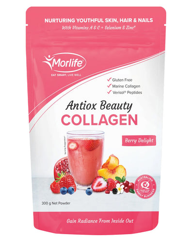 Proudly Contains- Verisol® Hydrolysed Marine Collagen Peptides (45%*), Antioxidant Superfruits Blend' (30%) (Strawberry, Blueberry, Pomegranate, Raspberry, Peach, Cherry, Cranberry), Natural Fruit Flavours, Functional Extracts (Acerola Cherry, Rice Hulls, Tomato, Elderberry, Bilberry, Turmeric, Rosemary, Aloe Vera, Ginkgo, Carrot, Black Pepper, Grapeseed, Green Tea), Amino Acids (Glutamine, Cysteine, Glycine), Beetroot, Prebiotic Fibre (Acacia Gum), Spinach', Cacao', Rosehips, Zinc Giuconate, Vitamin E, Coenzyme Q10, Selenium, Biotin.