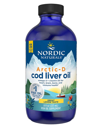 Arctic-D Cod Liver Oil™ (Liquid) is sourced sustainably from Norway's pristine waters. Enriched with 25 mcg (1000 IU) of natural vitamin D3, each soft gel offers 1060 mg of omega-3s for bone strength, mood balance, and immune support. Read more