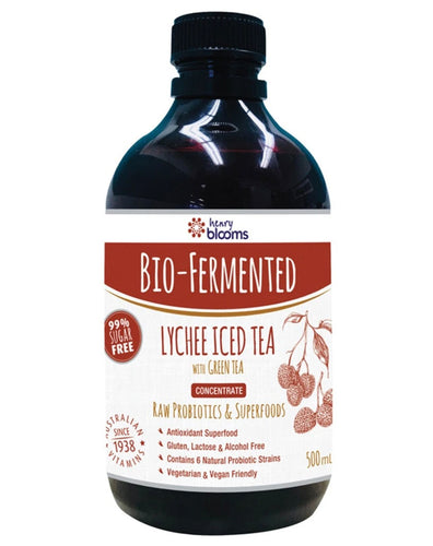 Order Bio-Fermented Lychee Iced Tea with Green Tea By Henry Blooms now to experience a health drink that will help you along in your fitness journey, being alcohol and gluten free, and 99% sugar free.
