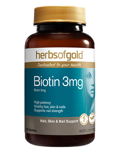 Biotin is a great supplement to have when you need hair, skin and nails support. Biotin 3mg by Herbs of Gold is a high strength supplement delivering the nutrients needed for healthy skin, hair and nails.