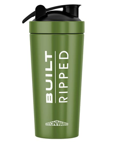 Lump-free and durable, the Nutrition Warehouse Built Ripped Stainless Steel Shaker (Khaki) comes in a  25-ounce (739ml) capacity with embossed markings for easy tracking of liquid intake. Whether you are mixing a pre-workout, protein powder, aminos, or simply staying hydrated with water, this stainless steel shaker is perfect for all-day hydration.