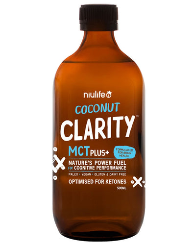 NiuLife Coconut Clarity MCT oil combines 3 key ingredients designed to fuel the cells that don’t respond to carbohydrates due to disease, help increase circulatory ketones for long-term energy and provide you with steady state energy that your muscles can use as opposed to being stored as fats.