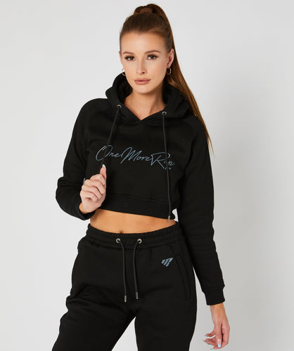 Crop Pullover Hoodie (Black) by OneMoreRep