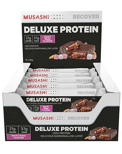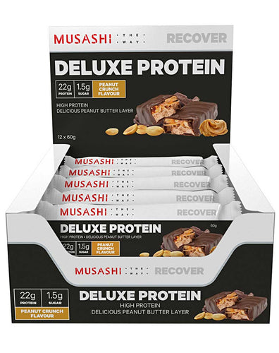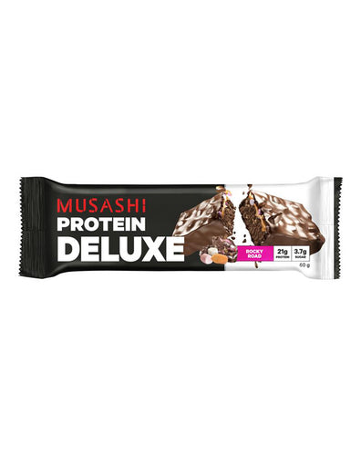 Don't blow out your macronutrients with unhealthy snacks get the Deluxe Protein Bar by Musashi. Choose one of the flavours today - high protein and delicious flavours on-the-go.