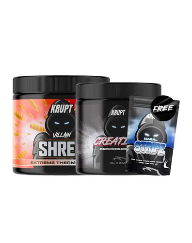 Take your supplement stack to the next level with this unbeatable online-only deal. When you buy any Krupt Villain Shred, you'll score a FREE 250g Creatine by Krupt and a bonus pack of Krupt Nasal Stripz, valued together at $64.90. Whether you're building your routine or levelling up your current stack, this limited-time bonus adds serious value to your purchase.