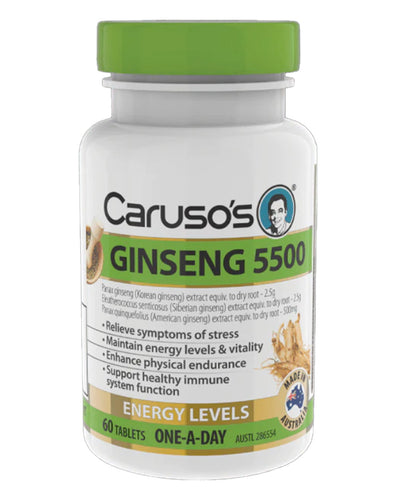 Relieve the symptoms of stress with Ginseng 5500 by Caruso's. This one-a-day formula contains three ginsengs: American, Siberian and Korean ginseng to support energy levels. Read more