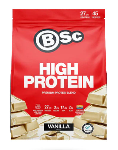 Increase your daily protein intake with the Body Science High Protein formula. This high protein, low carb, and fat sports supplement support performance and fitness goals. The whey protein blend added to this protein powder will help to deliver slow and fast-release protein to the body. High Protein by Body Science contains a blend of milk protein concentrate, whey protein concentrate and whey protein isolate, plus five digestive enzymes to support gut health and digestion.