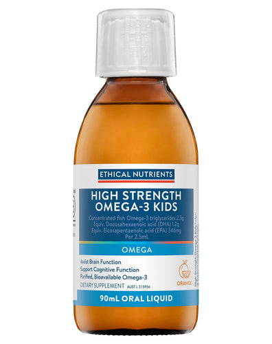 Why use High Strength Omega-3 Kids Liquid By Ethical Nutrients? Firstly, many commercial fish oils are low in quality and susceptible to being rancid. Plus, farming methods leave the quality of some fish oils being worse for wear. High Strength Omega-3 Kids Liquid By Ethical Nutrients is made from wild, oily cold-water fish. To make sure that your child gets only the best in purity and quality, High Strength Omega-3 Kids Liquid  By Ethical Nutrients goes through a special molecular distillation process.