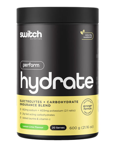 More than your regular hydration supplement, Switch Nutrition Hydrate Perform is the complete formula with aminos, electrolytes and carbohydrates. This formula has been carefully put together to fuel endurance, energy, performance and recovery. This comprehensive intra-workout formula will replenish electrolytes and carbohydrates lost when training.