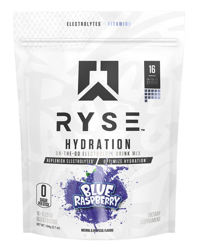 RYSE Hydration is a convenient electrolyte drink mix designed to support hydration, cellular energy, and recovery. Formulated with essential electrolytes and key vitamins, it helps replenish vital minerals lost during exercise or daily activities. With added ingredients to support muscle function and cognitive performance, RYSE Hydration is the perfect choice for staying refreshed and replenished.