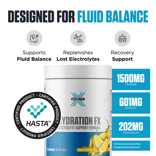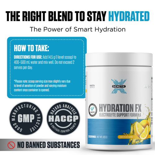 Hydration FX by Genetix Nutrition delivers clean, effective hydration with every scoop. Whether you're training in the heat, prepping for a race, or simply need daily electrolyte support, this formula helps you stay balanced, fuelled, and ready to perform.