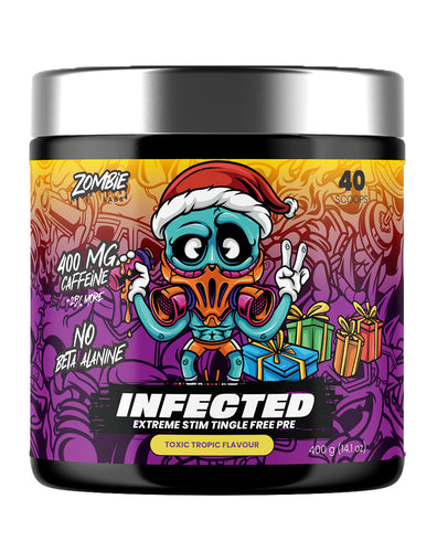 Infected by Zombie Labs contains a blend of ingredients to help you smash through your workouts. As they say, Zombie strength is beyond human. This high stim pre-workout will support muscle fibre recruitment and strength.