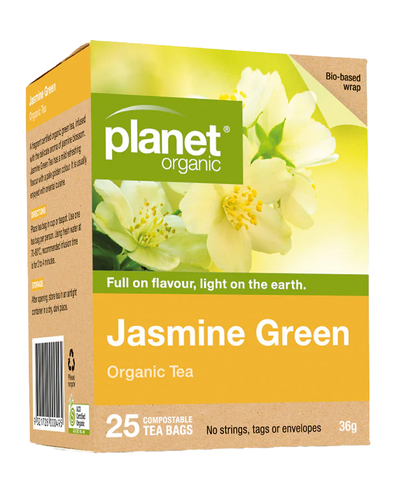 For a calm and refreshing tea ritual, Planet Organic Jasmine Green Tea by Planet Organic brings together a light floral aroma with a smooth, gentle taste. Crafted using the traditional scenting method, fresh jasmine blossoms are layered with organic green tea leaves until fully infused, then removed to leave behind a naturally fragrant cup.
