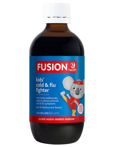 Kids’ Cold & Flu Fighter by Fusion Health has a delicious natural pear and blackcurrant flavour. It contains traditional Chinese and Western herbal medicine to provide immune support to children.