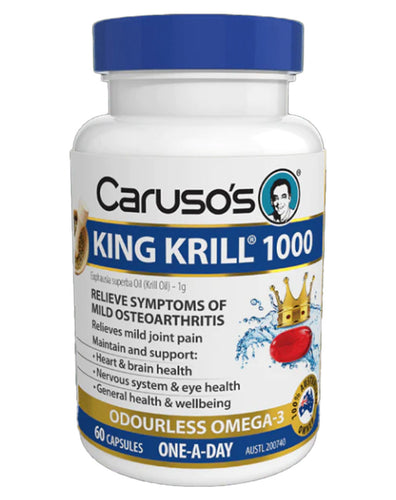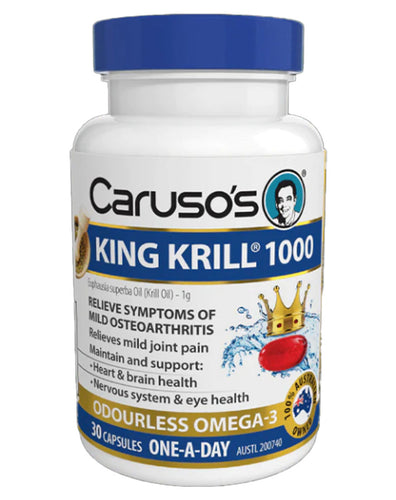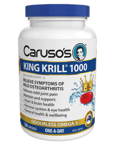 Get a great source of Omega-3 Fatty Acids and its potential health benefits with King Krill 1000 by Caruso's Natural Health. A potent supplement in an easy to access one-a-day formula and take your day-to-day supplementation to the next level! Read more