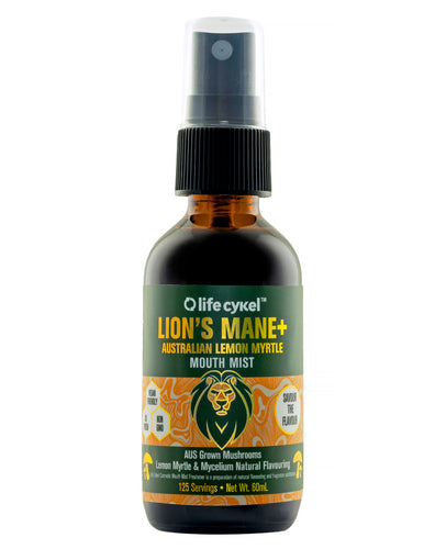Ingredients -Filtered Water, Alcohol (20-24% v/v), Mushroom Flavour: Lion’s Mane (Hericium coralloides) Mycelia & Fruiting Body, Lemon Myrtle Flavour (Backhousia citriodora) Leaf.