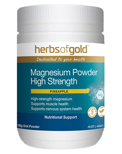 Discover the revitalising power of Herbs of Gold Magnesium Powder High Strength. Expertly formulated with a potent blend of magnesium glycinate and citrate, this supplement supports your body's magnesium needs with superior absorption for maximum benefit. Read more