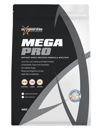 A. MEGAPRO is one of the only SUSTAINED RELEASE Protein powders on the Australian market. This means that when consumed, the user gets an immediate release of protein into the system (approx, 50%) and then a sustained ongoing release of up to 4 hours later. Basically MEGAPRO has been designed by NEXT GENERATION in order to take the confusion out of what protein powder you should be having. Instead of a protein for immediately after your workout, one for night-time and maybe one for pre-workouts, MEGAPRO can be utilised at anytime of the day for an immediate protein infusion and a sustained/constant release of protein into the system,