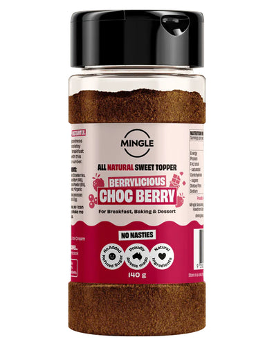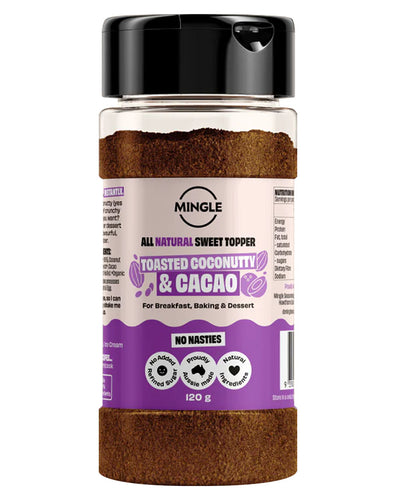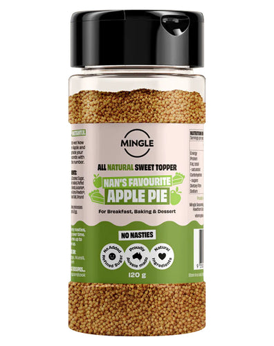 Natural Sweet Topper comes in 4 different flavours you can pick from, including Peanut Butter Crunch, Choc Berry, Apple Pie, and Toasted Coconut and Cacao. This natural seasoning is free from refined sugar or preservatives. Crunchy and delicious, you’ll love Mingle Seasoning on everything you cook. Upgrade your breakfast or dessert in seconds with Mingle Seasoning Natural Sweet Topper.