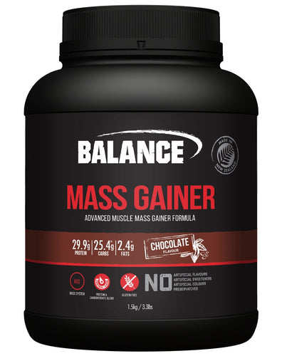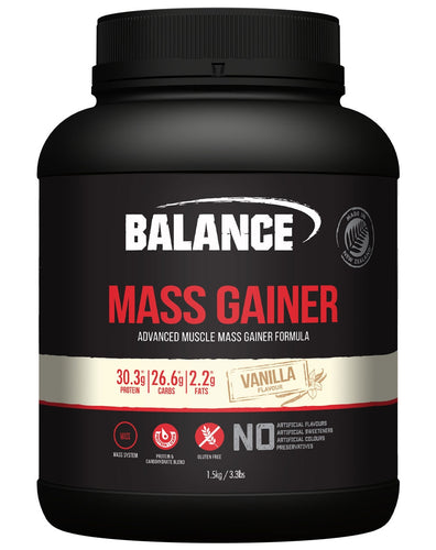 Balance Naturals Mass Gainer utilises only the highest quality of whey protein from New Zealand and combines it with added carbohydrates to ensure a synergy of macronutrients for optimal daily and post workout recovery is achieved.