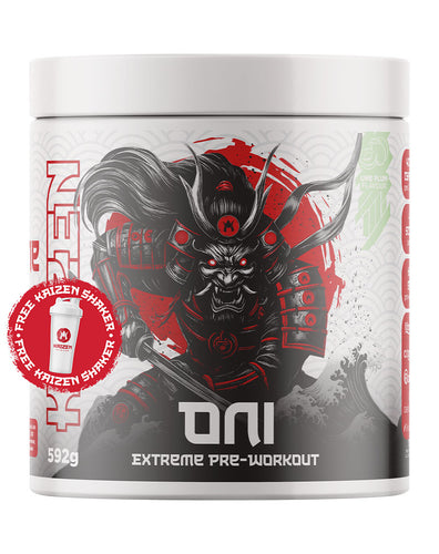 Oni is one of the most comprehensive and aggressive formulas ever created. It’s not designed for beginners – this is a hardcore stim pre that delivers controlled chaos. Kaizen Oni doesn’t ask. It doesn’t wait. It drags you into the iron battlefield, slams you into the weights, and dares you to survive the session. Oni is the unleashed chaos you have been waiting for.