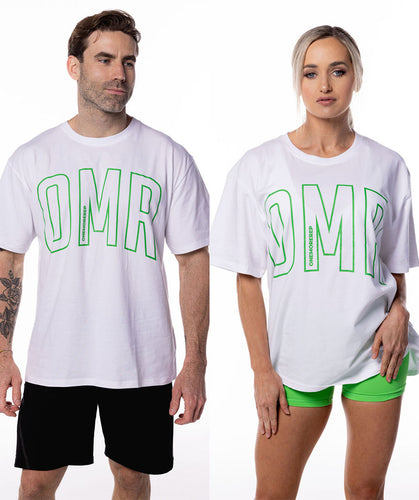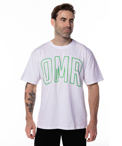 • Large OMR logo printed across the chest