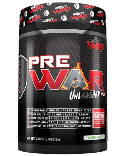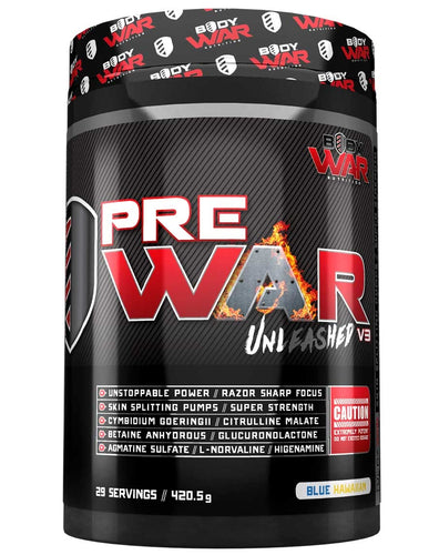 Body War Nutrition knows what you need when it comes to having the right tools for battle, and so they created Pre War! A synergistic blend of energy driving, blood flow promoting and mood stimulating ingredients combined to create razor-sharp performance, Pre War is the only pre-battle tool you need.
