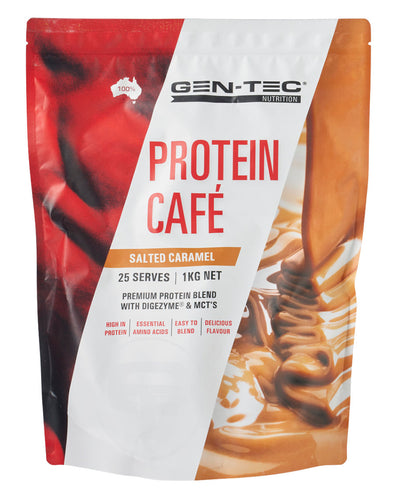 Enjoy a delicious and reliable source of protein suitable for everybody with Protein Café by Gen-Tec Nutrition. This superior-quality protein powder contains 5 premium proteins, delivering 27g of protein per serve.  This blend is ideal for all people wanting to hit their protein targets, as well as for athletes, bodybuilders, and the elderly needing high protein in their diet.