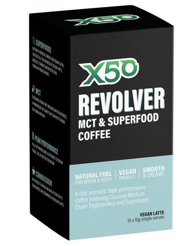 Give your morning routine that buzz and pull the trigger for a better life with Revolver MCT & Superfood Coffee by X50 Lifestyle. Make a difference to your day starting now.