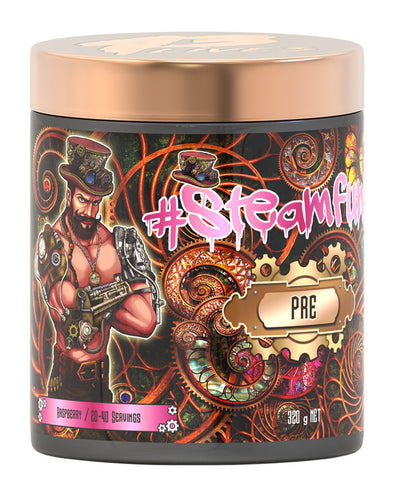 Think outside the box and get your hands on the new supp on the block, Steamfunk by 13 Lives. Improve your energy, vasodilation, and session with this new generation of pre supplements. One scoop of this formula contains 35mg of caffeine and 4000mg of citrulline malate. The unique combination of ingredients will also deliver no crash, jitters or slump.