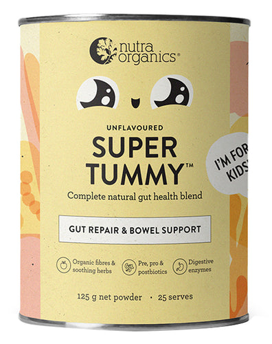 Keep little tummies happy and healthy with Super Tummy by Nutra Organics. It is packed with fibre, digestive enzymes, pre, pro and postbiotics, and soothing herbs. This no-fuss, all-in-one natural gut health formula helps to support a healthy digestive system. A versatile and complete natural gut health blend perfect for little ones who struggle with irregular bowel movement or lack fibre in their diet.