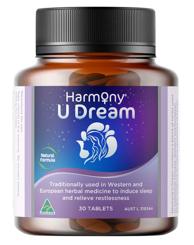 Get ready for a good night’s sleep with U Dream by Harmony! This is a multi-herb formula, which a high dose of zizyphus, a known plant-extract for assisting sleep and relaxation. Sour cherry contains natural melatonin which your body needs to be able to drift off into dreamland, and the addition of hops activates the melatonin.