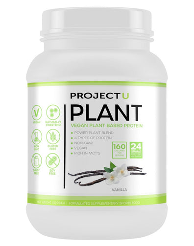 Project U’s powerful and delicious vegan protein powder PLANT can help you build serious muscle without costing the earth. If you’re looking for a plant-based solution for all of your protein needs, look no further than Project U PLANT - a vegan, gluten-free, soy-free, organic and nutrient-rich protein powder that doesn’t compromise on flavour or strength!