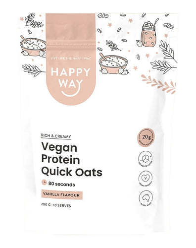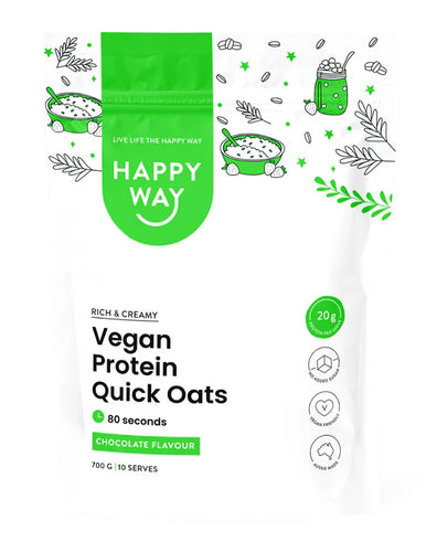 Crafted with a focus on natural, vegan-friendly ingredients, Vegan Protein Quick Oats by Happy Way provide a deliciously smooth texture and easy preparation, making them perfect for at home or on-the-go. Whether you're starting your day or refuelling between workouts, these quick oats are an easy way to stay on track with your health goals.