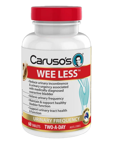 Do you struggle with an overactive bladder? Is urinary incontinence getting you down? Wee Less by Caruso’s has been specially formulated using selected herbal ingredients to support healthy bladder function, relieve urinary urgency associated with a medically diagnosed overactive bladder and support urinary tract health.