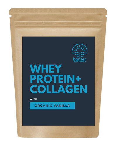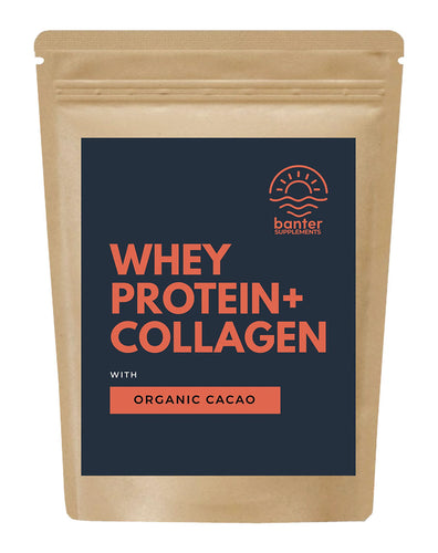 Whey Protein + Collagen by Banter Supplements delivers a premium protein blend designed to support your active lifestyle. Featuring high-quality Whey Protein Isolate combined with hydrolysed bovine collagen peptides, this versatile formula is perfect for those looking to incorporate both protein and collagen into their daily routine. Available in delicious Organic Vanilla Bean or Organic Raw Cacao flavours, it’s ideal for shakes, smoothies, or even in healthy recipes.
